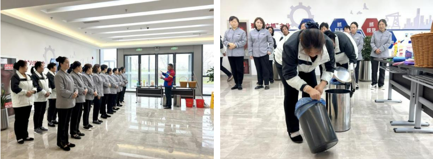 培訓(xùn)現(xiàn)場通過手把手教、一對一帶,緊盯員工專業(yè)技能的短板、漏洞、弱項(xiàng),系統(tǒng)全面地將常用操作流程、特種設(shè)備保養(yǎng)等專業(yè)保潔技能進(jìn)行講解和示范。通過更規(guī)范、專業(yè)、高效的工作方法,強(qiáng)化員工職業(yè)技能,提升物業(yè)服務(wù)水平。