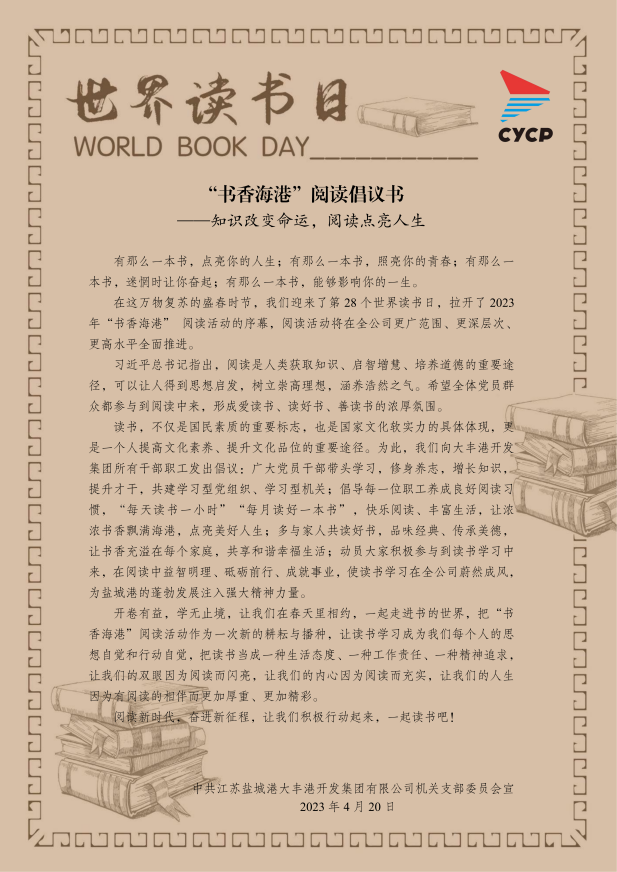 人間最美四“閱”天,不負(fù)春光書為伴。為深入學(xué)習(xí)貫徹黨的二十大精神,把握“學(xué)思想、強(qiáng)黨性、重實(shí)踐”的要求,連日來,鹽城港大豐港開發(fā)集團(tuán)深入開展“學(xué)習(xí)二十大 書香潤初心”讀書月活動,積極引導(dǎo)黨員、群眾養(yǎng)成“多讀書、讀好書、好讀書”的良好習(xí)慣,使讀書學(xué)習(xí)在全公司蔚然成風(fēng),為鹽城港的蓬勃發(fā)展注入強(qiáng)大精神力量。