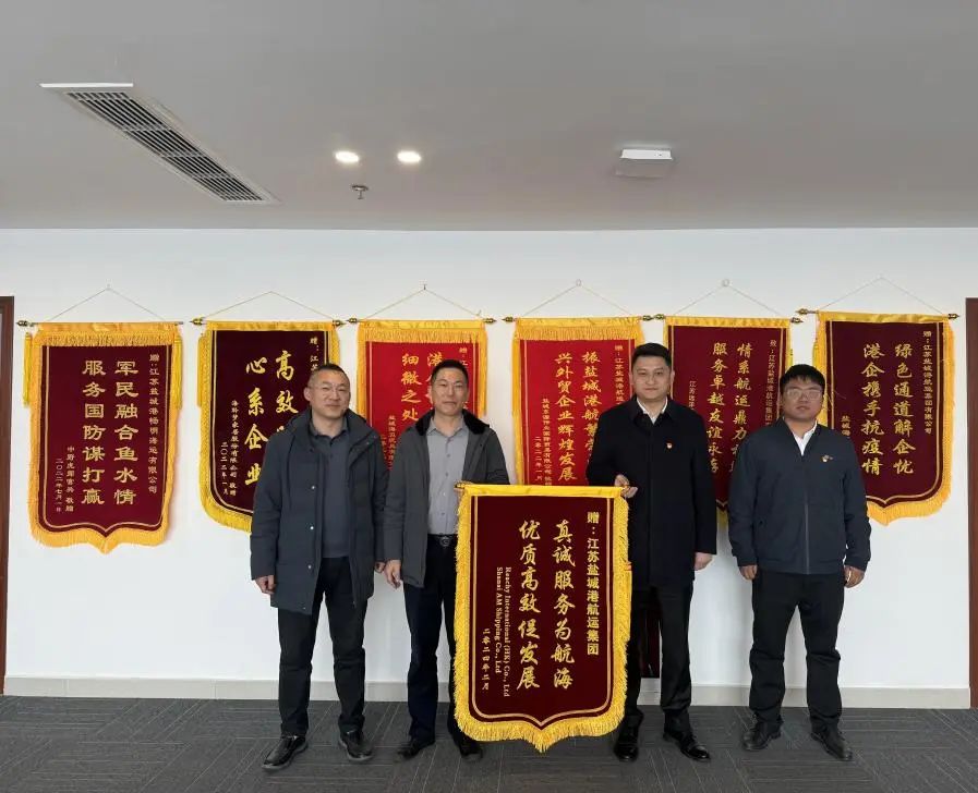 3月11日,香港汭灃航運有限公司、上海禛航船務(wù)有限公司代表送來了寫有“真誠服務(wù)為航海,優(yōu)質(zhì)高效促發(fā)展”“兩在兩同建新功 真心為企情誼濃”字樣的錦旗,對鹽城港航運集團、智慧港口公司長期以來提供的優(yōu)質(zhì)高效的服務(wù)表達感謝之情。