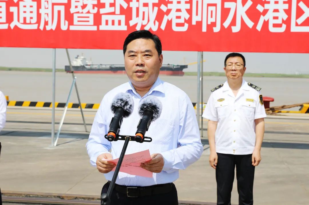 在全市上下深入學(xué)習(xí)貫徹市委八屆七次全會(huì)精神,勇當(dāng)全省發(fā)展新質(zhì)生產(chǎn)力的“碳路先鋒”,全面推進(jìn)“水運(yùn)江蘇”建設(shè)和海洋經(jīng)濟(jì)高質(zhì)量發(fā)展的重要時(shí)刻,6月13日上午,灌河口5萬(wàn)噸級(jí)航道通航暨鹽城港響水港區(qū)至東非國(guó)際航線開(kāi)通活動(dòng)成功舉行,標(biāo)志著鹽城沿?!耙桓鬯膮^(qū)”萬(wàn)噸級(jí)以上航道實(shí)現(xiàn)通航全覆蓋,對(duì)鹽城港加快構(gòu)建“河海聯(lián)運(yùn)”新格局,推動(dòng)沿海地區(qū)高質(zhì)量發(fā)展,打造“藍(lán)色經(jīng)濟(jì)”增長(zhǎng)極具有重要意義。市委常委、副市長(zhǎng)王連春宣布通航。鹽城港集團(tuán)黨委書(shū)記、董事長(zhǎng)周正雄介紹相關(guān)情況。連云港海事局副局長(zhǎng)丁星,響水縣委書(shū)記郭超出席活動(dòng)并致辭。市政府副秘書(shū)長(zhǎng)陶曉林主持。