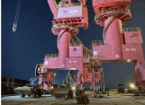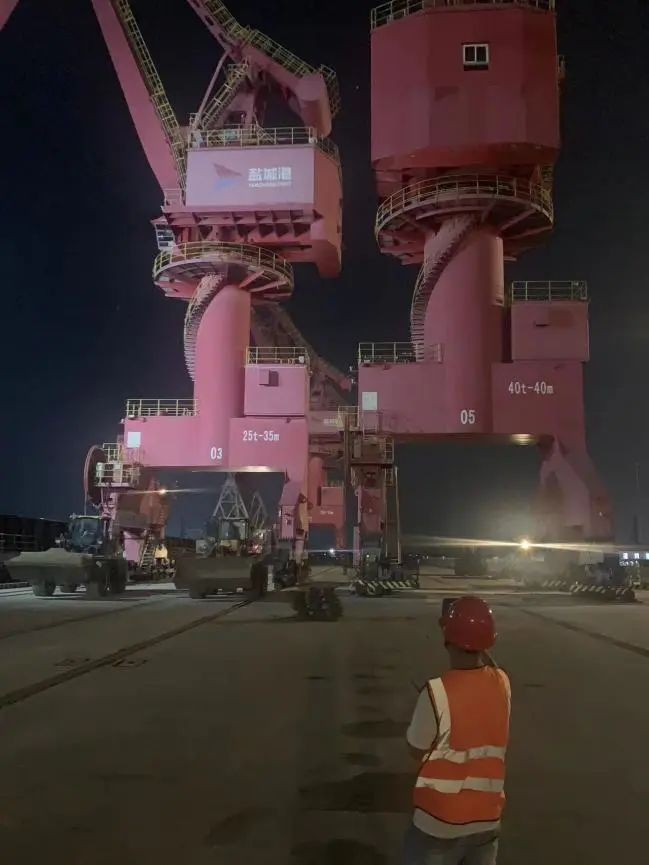 “5#門(mén)機(jī)入軌正?!薄靶凶邫C(jī)構(gòu)壓輪正常”“回轉(zhuǎn)、起升、變幅機(jī)構(gòu)運(yùn)行正?!彪S著現(xiàn)場(chǎng)指揮員對(duì)講機(jī)里傳來(lái)各機(jī)構(gòu)一切正常運(yùn)行的報(bào)告,經(jīng)過(guò)10個(gè)晝夜的連續(xù)奮戰(zhàn),鹽城港射陽(yáng)港區(qū)碼頭門(mén)機(jī)移位作業(yè)宣告完美收官。