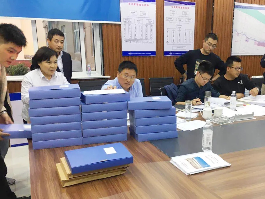 檢查組一行首先聽取了航道整治工程建設(shè)進(jìn)展的工作匯報,隨后檢查了監(jiān)理、施工單位的資料整理工作,并對目前的資料建檔規(guī)整進(jìn)行了指導(dǎo),指出了資料中存在的不足和需要完善的部分。