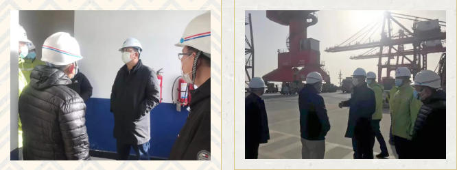 會(huì)前,夏立新一行來到集裝箱碼頭等生產(chǎn)一線,對(duì)疫情防控工作情況進(jìn)行實(shí)地調(diào)研。