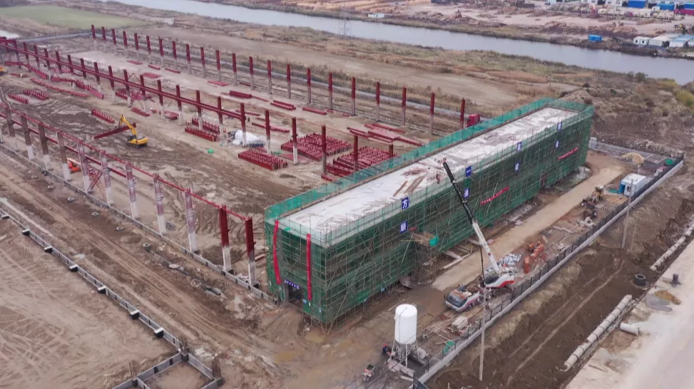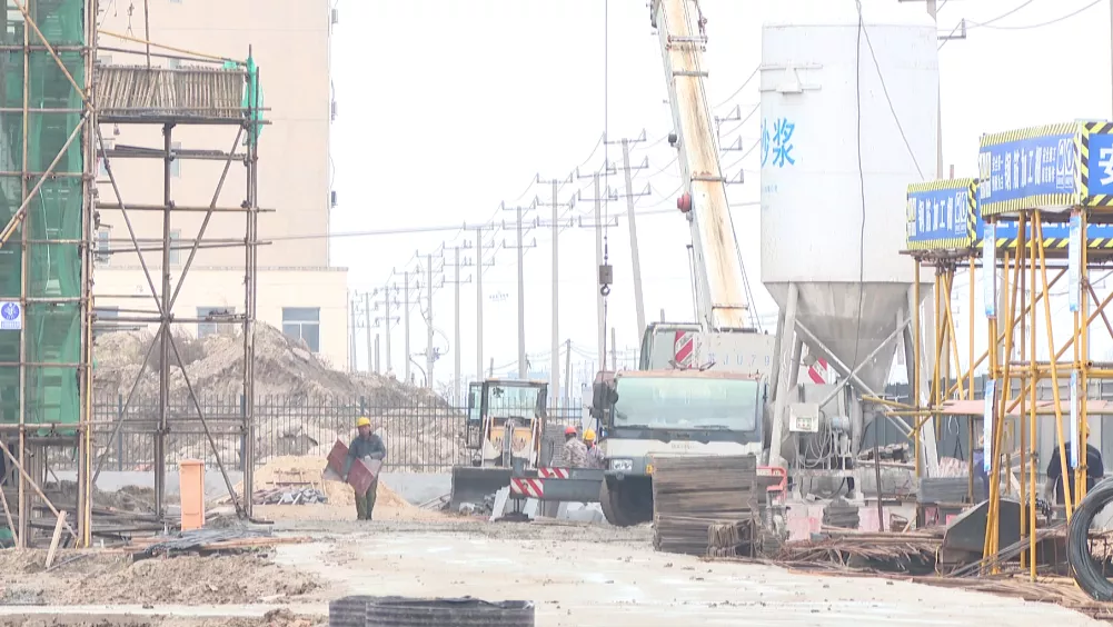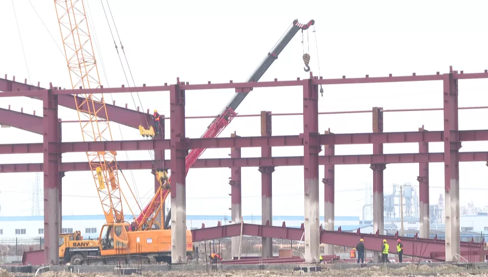 走進(jìn)大豐港區(qū)昆侖綠建項目建設(shè)現(xiàn)場,工人們正在緊張作業(yè),鋼管架密如織網(wǎng)、轟鳴聲震耳欲聾、運輸車來回穿梭,現(xiàn)代化的廠房即將拔地而起。