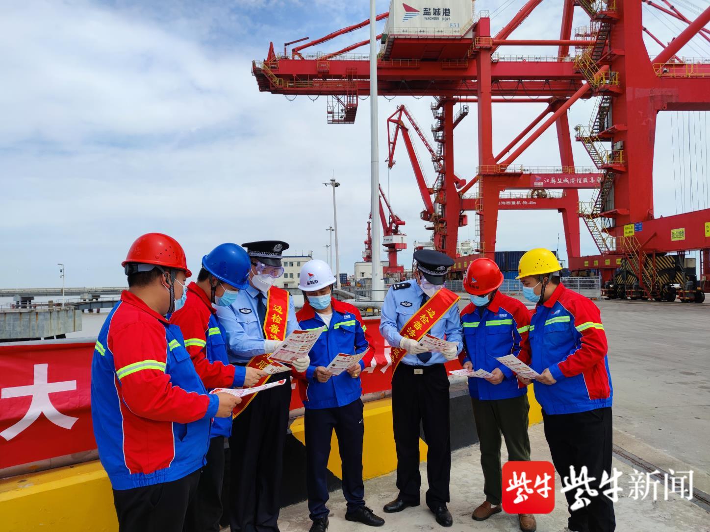 為切實提高碼頭一線工人的維權(quán)守法意識和知法用法能力,5月27日上午,江蘇鹽城出入境邊防檢查站組織普法小分隊,頂著炎炎熱日來到鹽城港大豐港區(qū)集裝箱碼頭,開展“美好生活·民法典相伴”主題宣傳活動,提升碼頭一線工人守法意識和學法熱情。