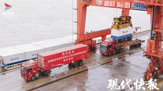 現(xiàn)代快報訊(通訊員 蔡宏立 記者 王菲)4 月 23 日,隨著一聲汽笛拉響,鹽城港"大港集 002 "號滿載著 36TEU 集裝箱緩緩靠泊常州錄安洲長江碼頭,標志著鹽城港至常州集裝箱航線正式開通?,F(xiàn)代快報記者了解到,這是鹽城港持續(xù)完善內貿運輸物流網(wǎng)絡,服務國內"大循環(huán)"的又一重要舉措。至此,鹽城港航線總數(shù)增至 37 條,"海上聯(lián)結南北、內陸貫通東西、向海融入中日韓"雙循環(huán)新格局加速構建。