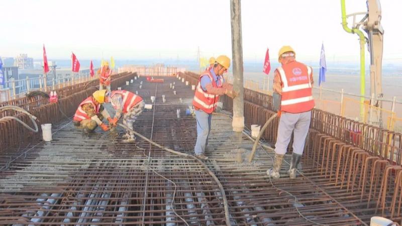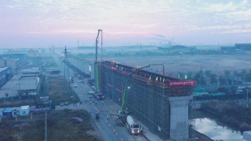 “我們承建的大豐港特大橋全長17.949公里,目前項目首個支架現(xiàn)澆梁一次性澆筑已完成,連續(xù)梁澆筑的完成標志著大豐港鐵路支線施工建設進入新的階段?!贝筘S港鐵路支線工程3標經(jīng)理部現(xiàn)場負責人陳甫軍告訴記者。