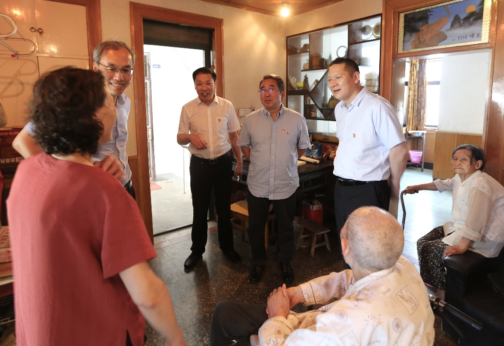 在建國(guó)前入黨老黨員奚正銀老人家中,陳正華看到97歲的老人身體硬朗、精神矍鑠,感到十分高興。他握著老人的手認(rèn)真詢問(wèn)老人的生活及兒女就業(yè)工作情況,并為老人戴上“光榮在黨50年”紀(jì)念章,送上慰問(wèn)金,感謝他長(zhǎng)期以來(lái)為黨和國(guó)家作出的積極貢獻(xiàn),并囑咐他保重身體。同時(shí),陳正華還要求隨行青年黨員積極向老同志學(xué)習(xí),定期上門(mén)開(kāi)展志愿服務(wù)活動(dòng),陪伴老黨員、傾聽(tīng)他們?cè)?jīng)的故事,在向革命前輩學(xué)習(xí)革命精神的同時(shí),將黨最新的方針政策、會(huì)議精神及時(shí)傳達(dá)給老黨員。