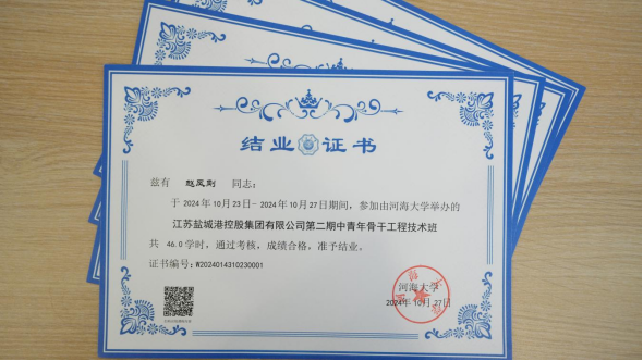 為貫徹落實集團黨委關(guān)于人才工作的部署要求,提升中青年骨干的專業(yè)素養(yǎng)和綜合能力,著力打造適應(yīng)新時代中國特色社會主義現(xiàn)代化建設(shè)的新型勞動者隊伍,為集團高質(zhì)量發(fā)展奠定堅實的人才基礎(chǔ)。10月23日—27日,鹽城港集團第二期中青年骨干工程技術(shù)班在河海大學(xué)成功舉辦,來自集團各單位32名工程技術(shù)類骨干參加本次培訓(xùn)。
