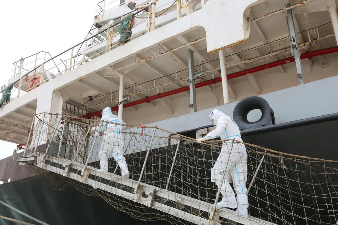 接到任務(wù)后,濱海港區(qū)第一時(shí)間制定了“普拉通”輪專項(xiàng)應(yīng)急方案,布置船岸隔離、進(jìn)出管控、通風(fēng)消毒、個(gè)人防護(hù)、終末消殺、應(yīng)急處置等工作,明確各環(huán)節(jié)責(zé)任主體。疫情船靠泊期間,港區(qū)停止一切貨物裝卸作業(yè),通知候泊船舶轉(zhuǎn)港裝卸,清空碼頭面及堆場(chǎng)的人和物,對(duì)重點(diǎn)人員、重點(diǎn)部位啟動(dòng)高風(fēng)險(xiǎn)防控工作標(biāo)準(zhǔn)。對(duì)貨輪靠泊區(qū)域進(jìn)行全面封閉管理,除引航員、登臨檢疫人員等必需人員外,一律不得登船。同時(shí),協(xié)助海關(guān)、海事、邊檢、濱??h衛(wèi)健委及船代等部門、單位形成聯(lián)合管理機(jī)制,內(nèi)外聯(lián)動(dòng)、共同加強(qiáng)對(duì)疫情船舶的監(jiān)督管理工作,做好港口人員排查、隔離,嚴(yán)把疫情防控第一關(guān),確保港區(qū)口岸安全,真正做到疫情防控和生產(chǎn)經(jīng)營(yíng)“兩手抓、兩不誤”。