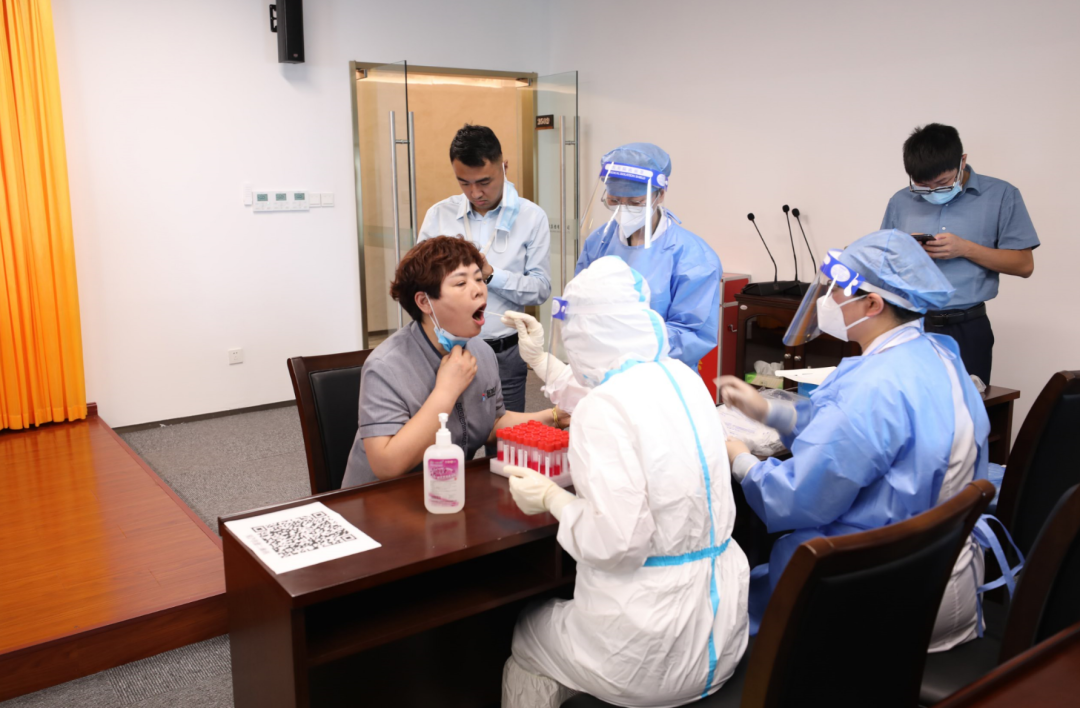 8月18日,先鋒社區(qū)黨員干部會(huì)同社區(qū)衛(wèi)生服務(wù)中心醫(yī)務(wù)工作者來(lái)集團(tuán),為集團(tuán)機(jī)關(guān)全體員工提供上門核酸檢測(cè)服務(wù),齊力共筑抗疫“長(zhǎng)城”。