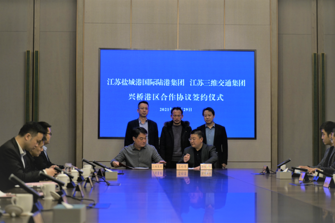 12月29日,陸港集團(tuán)與三維交通集團(tuán)簽訂興橋港區(qū)合作協(xié)議。