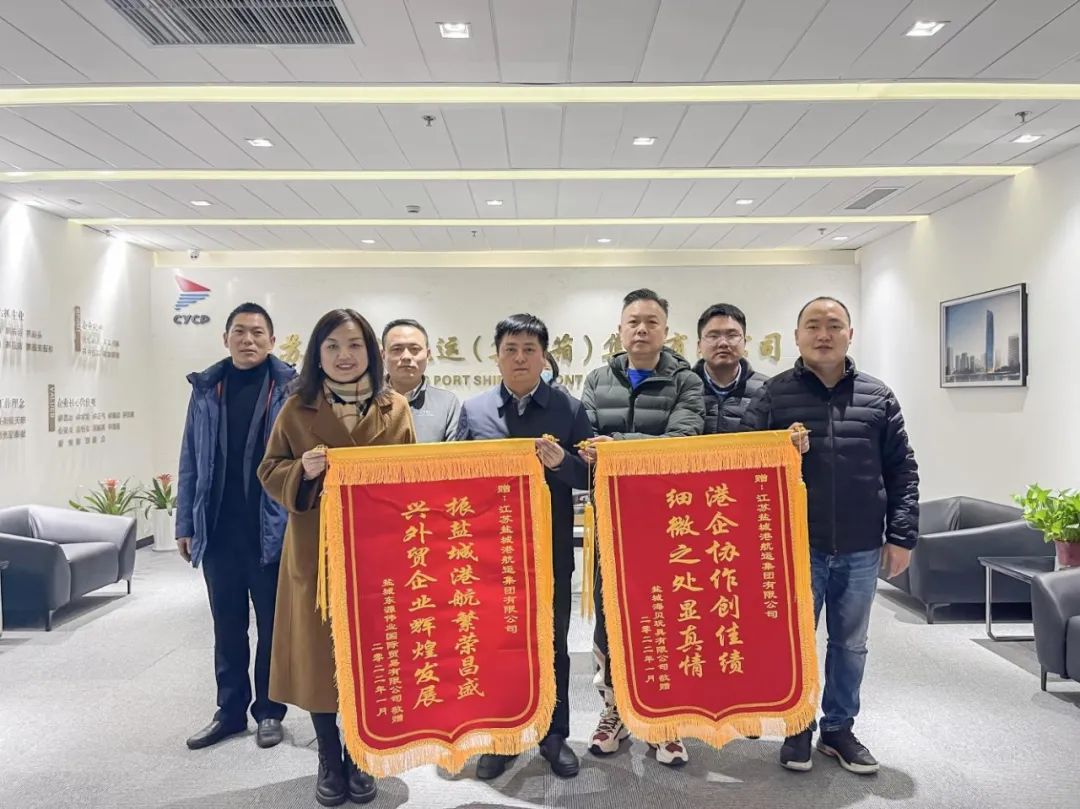1月25日,農(nóng)歷小年這一天,南京海聆夢、鹽城東源偉業(yè)和鹽城海貝玩具三家公司不約而同來到鹽城港航運集團(tuán),分別將寫有“高效服務(wù)心系企業(yè)”、“振鹽城港航繁榮昌盛,興外貿(mào)企業(yè)輝煌發(fā)展”、“港企協(xié)作創(chuàng)佳績,細(xì)微之處顯真情”的錦旗送到了公司班子手中,感謝航運集團(tuán)一年來在貨物出運上給予的大力支持。