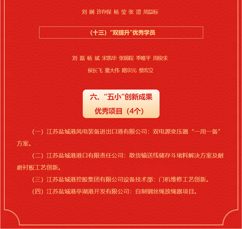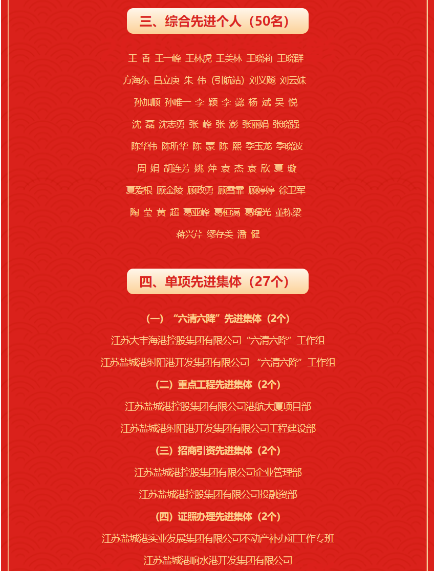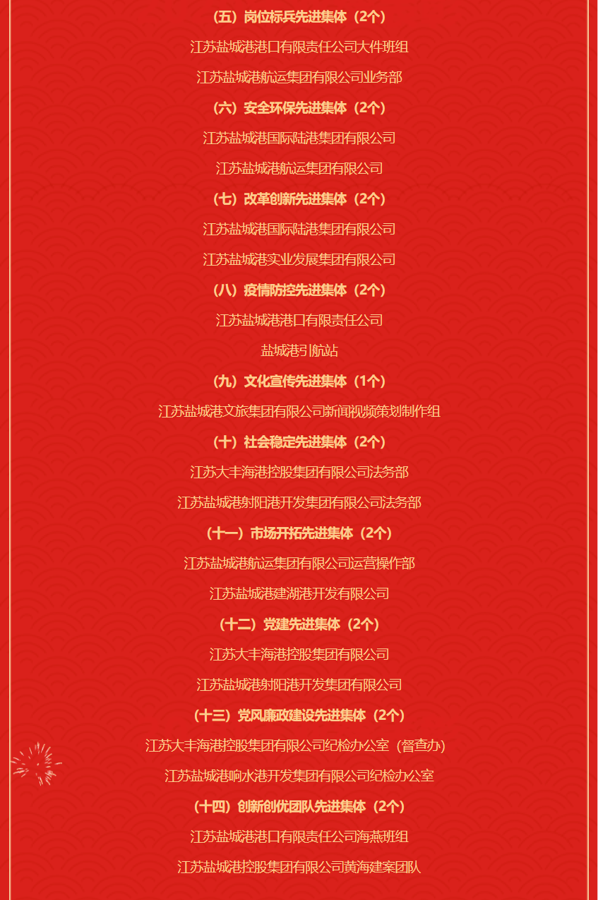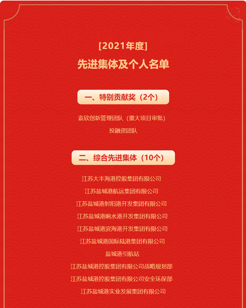 江蘇鹽城港控股集團(tuán)有限公司 2021年度先進(jìn)集體及個(gè)人名單