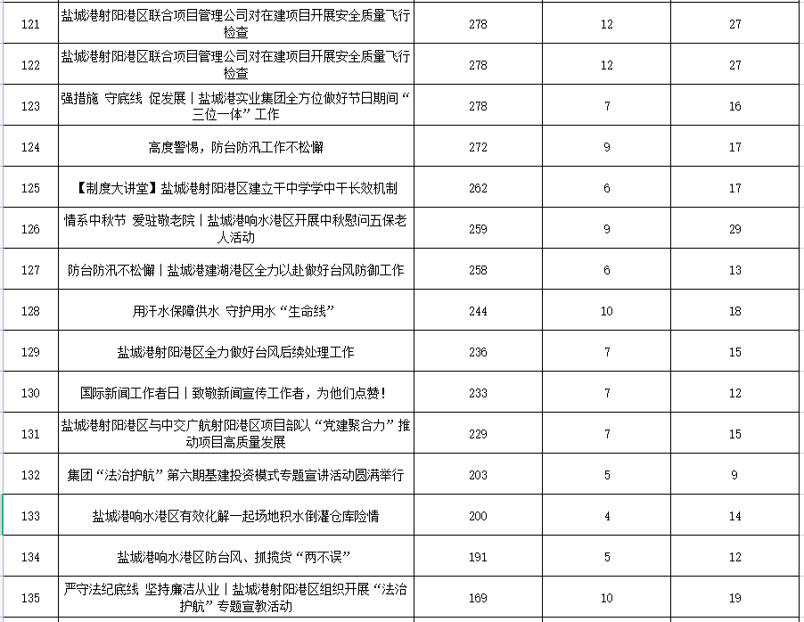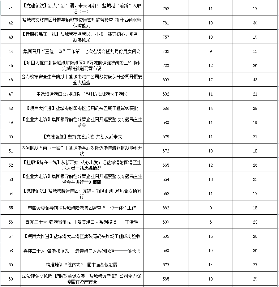 公眾號(hào)各單位綜合參與數(shù)據(jù)排名