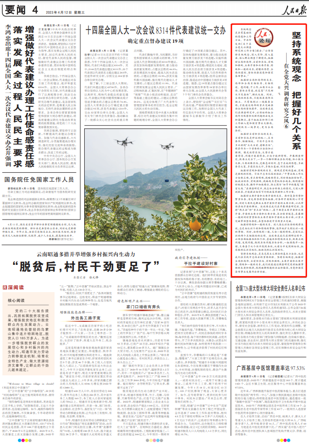 問(wèn)題是時(shí)代的聲音。練好調(diào)查研究基本功,把事情的真相和全貌調(diào)查清楚,把問(wèn)題的本質(zhì)和規(guī)律把握準(zhǔn)確,把解決問(wèn)題的思路和對(duì)策研究透徹,一錘接著一錘敲,一步緊跟一步行,把一個(gè)個(gè)“問(wèn)題清單”變?yōu)椤俺晒鍐巍?,我們就一定能積小勝為大勝,用實(shí)際行動(dòng)扎實(shí)推進(jìn)中國(guó)式現(xiàn)代化。