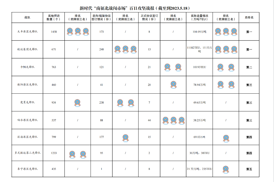 活動開展以來,累計拜訪客戶數(shù)量9907家,簽訂意向/框架協(xié)議數(shù)量1464份,簽訂正式協(xié)議173份,實際走量22000TEU、449.21萬噸。