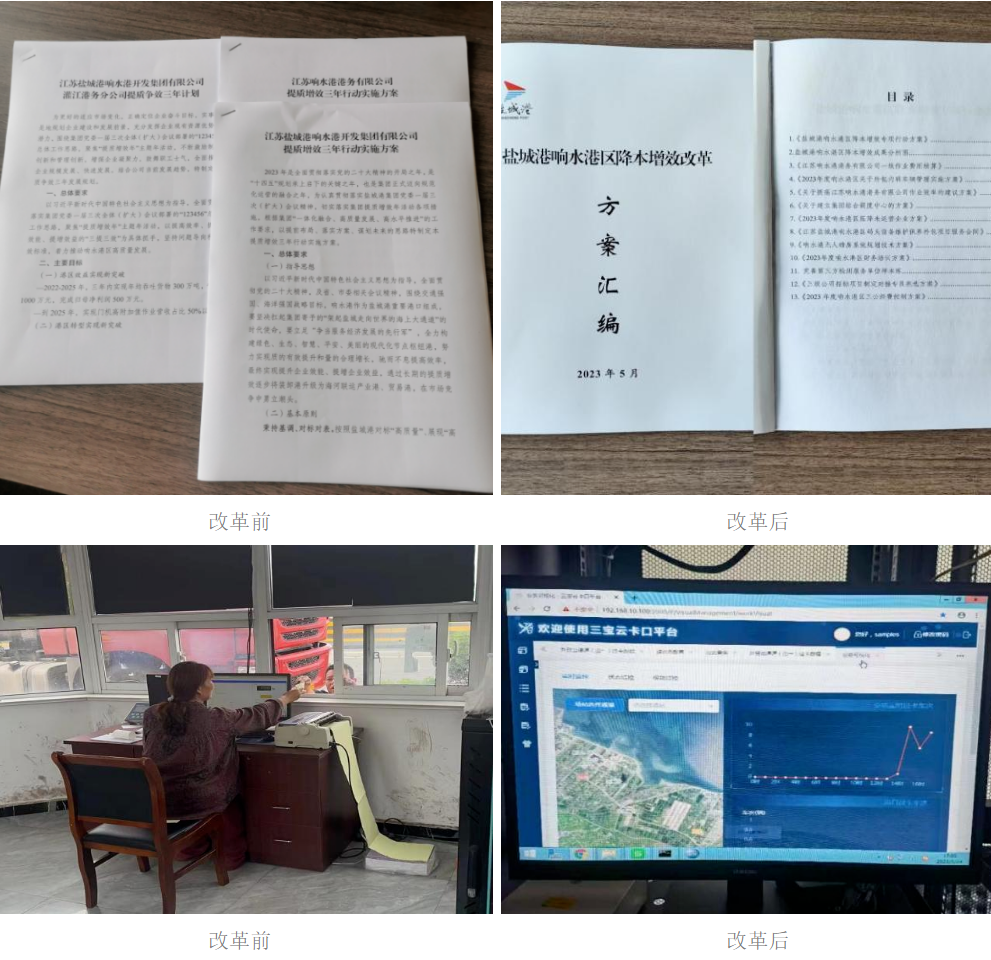 “降本增效”不僅是此次改革期間的重點(diǎn)工作,也是響水港區(qū)以及集團(tuán)全年度的重點(diǎn)工作。通過深入一線調(diào)研,集團(tuán)戰(zhàn)略規(guī)劃部在充分吸收采納集團(tuán)各部門意見的基礎(chǔ)上,圍繞關(guān)鍵環(huán)節(jié)深挖降本節(jié)支潛在點(diǎn),形成《鹽城港響水港區(qū)降本增效專項(xiàng)行動方案匯編》,通過11項(xiàng)有效措施全力推進(jìn)響水港區(qū)降本增效工作。通過優(yōu)化作業(yè)流程,完善勞務(wù)外包模式,預(yù)計(jì)實(shí)現(xiàn)2023年底較2022年單噸一線作業(yè)成本下降5%,節(jié)省約240萬維保成本;完成無人磅房試點(diǎn)改造,預(yù)計(jì)實(shí)現(xiàn)年約42萬元人工成本的節(jié)約;完善第三方檢測服務(wù)樣本庫,實(shí)現(xiàn)項(xiàng)目檢測成本5%-10%的降低;推進(jìn)設(shè)立招標(biāo)專員,實(shí)現(xiàn)招標(biāo)(自主實(shí)施項(xiàng)目)審批流程節(jié)約8個工作日,效率提升33%;制定三公經(jīng)費(fèi)控制方案,預(yù)計(jì)年底實(shí)際費(fèi)用支出降幅較2022年達(dá)到10%。