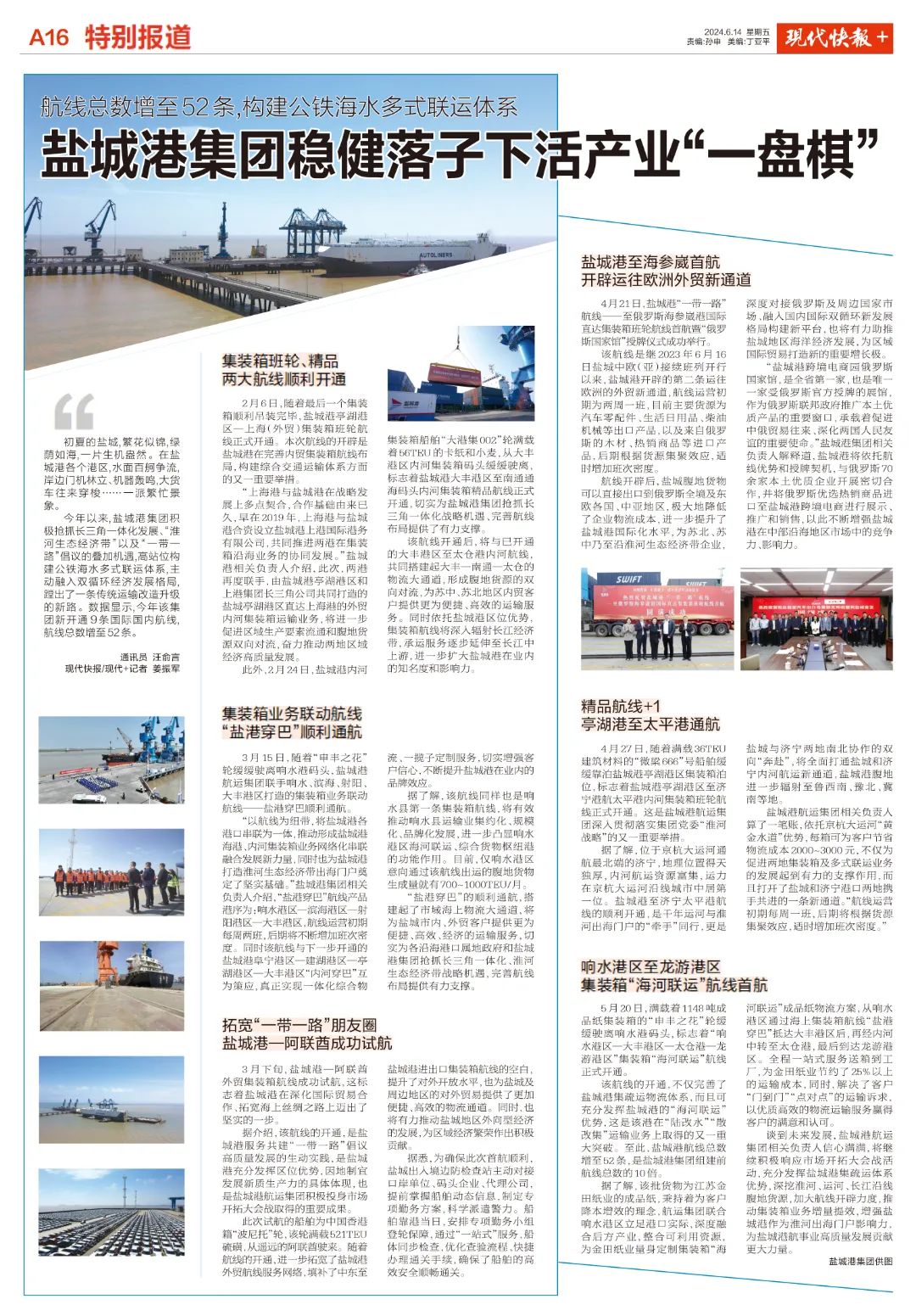據(jù)介紹,該航線的開通,是鹽城港服務共建“一帶一路”倡議高質量發(fā)展的生動實踐,是鹽城港充分發(fā)揮區(qū)位優(yōu)勢,因地制宜發(fā)展新質生產(chǎn)力的具體體現(xiàn),也是鹽城港航運集團積極投身市場開拓大會戰(zhàn)取得的重要成果。