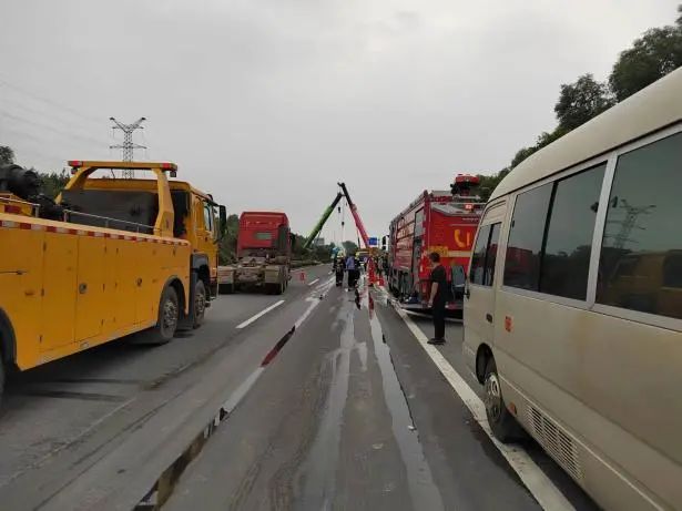 根據(jù)現(xiàn)場(chǎng)險(xiǎn)情,公安交警部門(mén)第一時(shí)間封鎖事故現(xiàn)場(chǎng),禁止一切車(chē)輛靠近,消防大隊(duì)出動(dòng)消防車(chē)對(duì)事故車(chē)輛罐體進(jìn)行噴射冷卻,聯(lián)系吊車(chē)對(duì)其進(jìn)行罐體扶正工作,隨后由?;愤\(yùn)輸公司救援搶險(xiǎn)隊(duì)使用相關(guān)設(shè)備將泄漏罐車(chē)內(nèi)的“高沸點(diǎn)芳烴”進(jìn)行抽取,并轉(zhuǎn)移至指定安全區(qū)域。