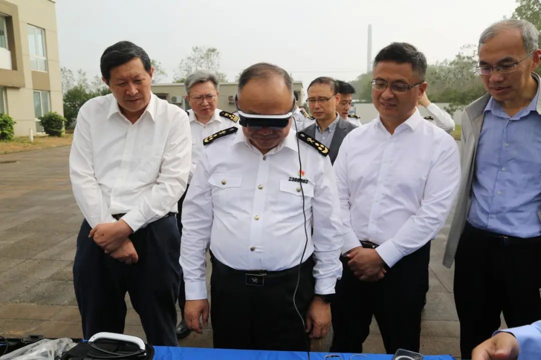 現(xiàn)場,鹽城電子口岸有限公司向各地海關(guān)領(lǐng)導(dǎo)展示了AR眼鏡功能。目前,該設(shè)備已能完成實時信息獲取、實時投屏與傳輸、數(shù)據(jù)采集與分析等功能,實現(xiàn)全方位遠(yuǎn)程協(xié)作,進(jìn)一步提高海關(guān)工作效率和準(zhǔn)確性。通過前沿技術(shù)和智能設(shè)備應(yīng)用,監(jiān)管查驗實現(xiàn)了標(biāo)準(zhǔn)化、智能化和實景化。