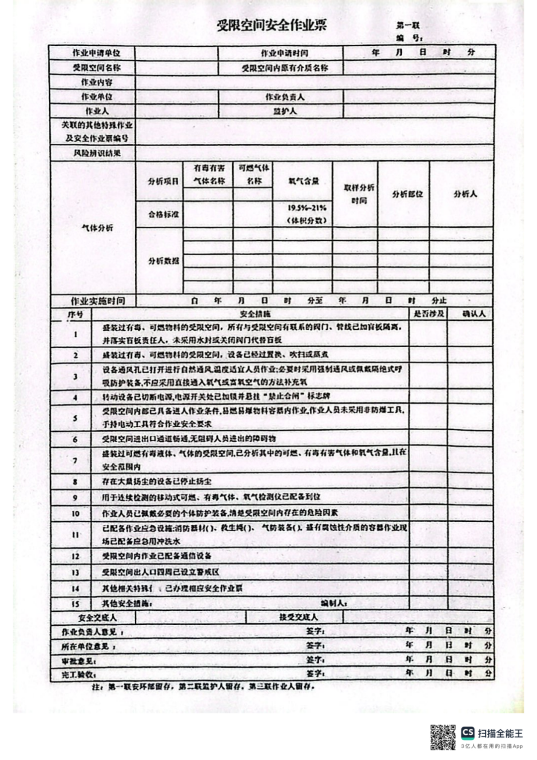 ????規(guī)范作業(yè),切勿冒險。有限作業(yè)必須進行嚴格審批,作業(yè)前必須進行危險有害因素辨識,并將危險有害因素、防控措施和應急措施告知作業(yè)人員。