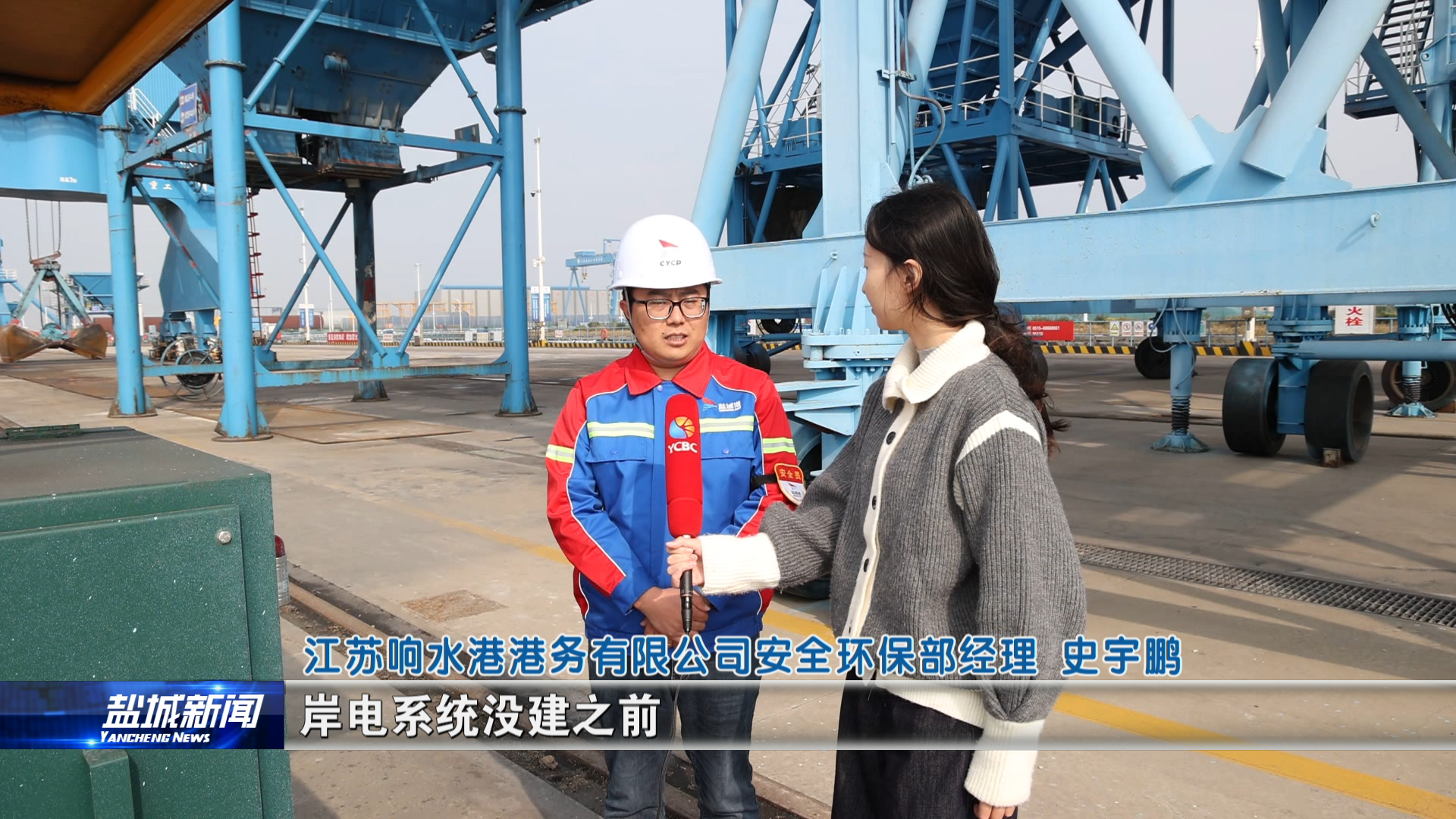 這是我們的岸電系統(tǒng),岸電系統(tǒng)沒建之前,船上都是自己的發(fā)電機進行發(fā)電,有廢氣,現(xiàn)在接入我們岸電之后,大大減少了廢氣的排放。同時引進了十臺新能源集卡,大大降低了廢氣的排放和二氧化碳的排放。