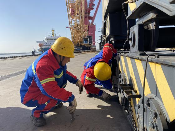 為確保設備防寒工作得到有效落實,射陽港區(qū)堅持問題導向,明確責任分工,加大檢查監(jiān)督力度,開展安全警示教育及作業(yè)標準方面的專題培訓,引導干部職工深入識別和分析各類安全風險,堅持“邊檢查、邊整改、邊提升”的原則,重點關注門機、場地機械等關鍵設備,加強數(shù)據(jù)監(jiān)測、設備基礎檢查力度,準確掌握設備變化情況,打好設備防寒“組合拳”。