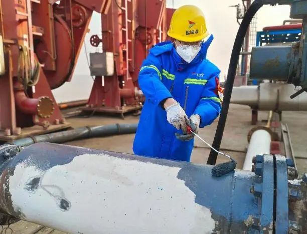 行動(dòng)期間,工作人員根據(jù)作業(yè)方案嚴(yán)格落實(shí)相關(guān)防范措施,采用科學(xué)的除銹方法與現(xiàn)場相匹配的漆料,仔細(xì)打磨掉碼頭裝卸設(shè)備、管道、閥門等設(shè)備表面的銹跡與舊漆,進(jìn)行細(xì)致處理,然后均勻涂刷上底漆與面漆。每一道工序都飽含專注與努力,確保涂層平整光滑、附著力強(qiáng),能為設(shè)施提供長效防護(hù)。