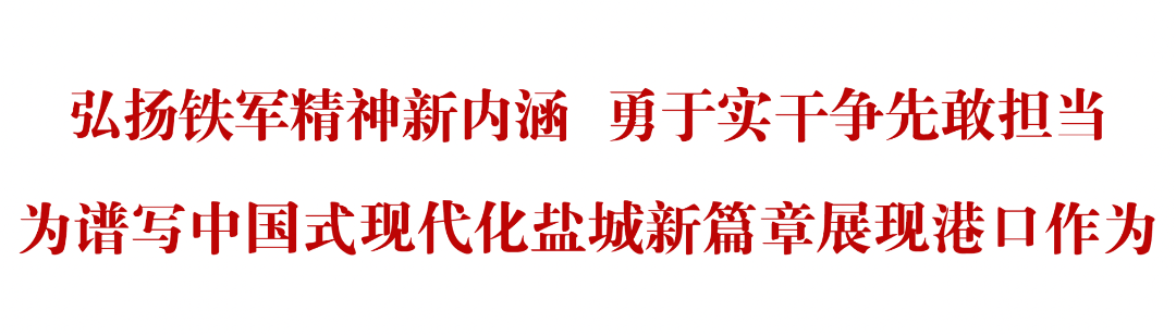 要更加緊密地團結在以習近平同志為核心的黨中央周圍,在市委的堅強領導下,弘揚不怕困難、不畏艱險,勇于斗爭、敢于勝利的鐵軍精神新內涵,以實干爭先譜寫發(fā)展答卷,奮力在中國式現代化鹽城新實踐中展現港口作為。