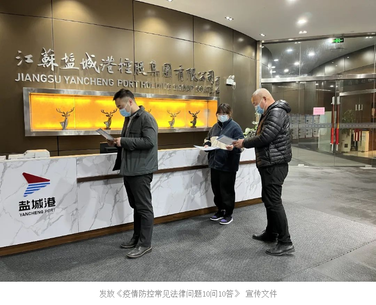 疫情就是生命,防控就是責(zé)任。為落實(shí)鹽城港集團(tuán)疫情防控工作會(huì)議精神,營造良好的疫情防控法治環(huán)境,鹽城港大豐港區(qū)積極開展“依法防控、普法同行”專項(xiàng)行動(dòng),通過宣傳疫情防控法治知識(shí),引導(dǎo)職工增強(qiáng)自我防護(hù)意識(shí)和法治意識(shí),把普法宣傳貫穿到疫情防控工作的全過程,筑牢疫情防控的物理屏障。