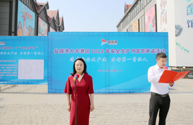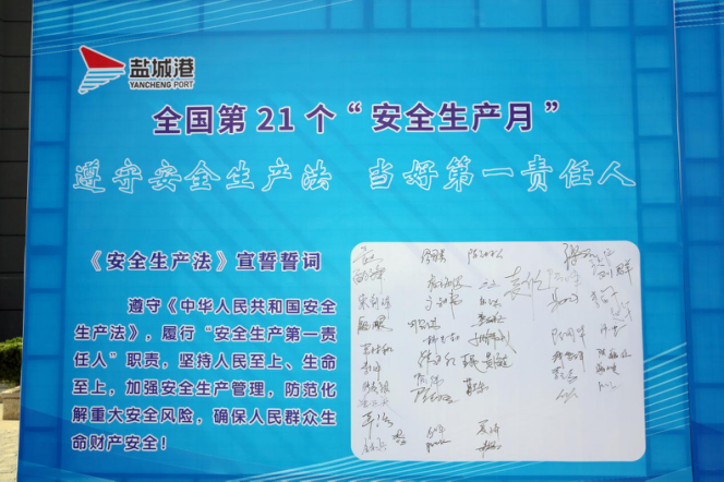 今年6月是全國第21個、全省第29個“安全生產(chǎn)月”,主題是“遵守安全生產(chǎn)法、當(dāng)好第一責(zé)任人”。為促進(jìn)安全生產(chǎn)形勢持續(xù)穩(wěn)定向好,保障鹽城港集團(tuán)“經(jīng)營興航年”各項目標(biāo)指標(biāo)順利完成,按照鹽城港集團(tuán)統(tǒng)一部署,6月2日,大豐港區(qū)舉行2022年安全生產(chǎn)月宣誓承諾活動。大豐港區(qū)各二級公司班子成員及安全條線人員參加。