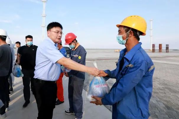 為慰問一線高溫工作人員,鹽城港大豐港區(qū)組織慰問隊(duì)伍開展“戰(zhàn)高溫·保進(jìn)度”慰問活動(dòng),將防暑降溫大禮包帶進(jìn)鹽城港自動(dòng)化集裝箱堆場(chǎng)現(xiàn)場(chǎng),送到每一位職工手中,感謝職工們的辛勤付出。