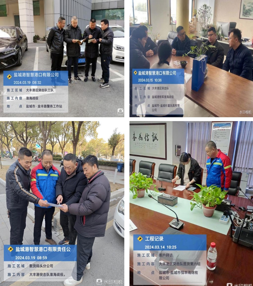 大豐港區(qū)突擊隊(duì)采用“早布置、晚總結(jié)”工作模式,全方位開展業(yè)務(wù)拓展。在走訪過程中,隊(duì)員們發(fā)揚(yáng)“四敢”精神和“鐵軍”精神,緊扣“算賬式攬貨、定制化服務(wù)、分星級定價、一季一走訪、修正式創(chuàng)新、增效益共贏”總體要求,宣傳鹽城港優(yōu)勢資源,現(xiàn)場解答客戶難題,記錄需研究的問題。
