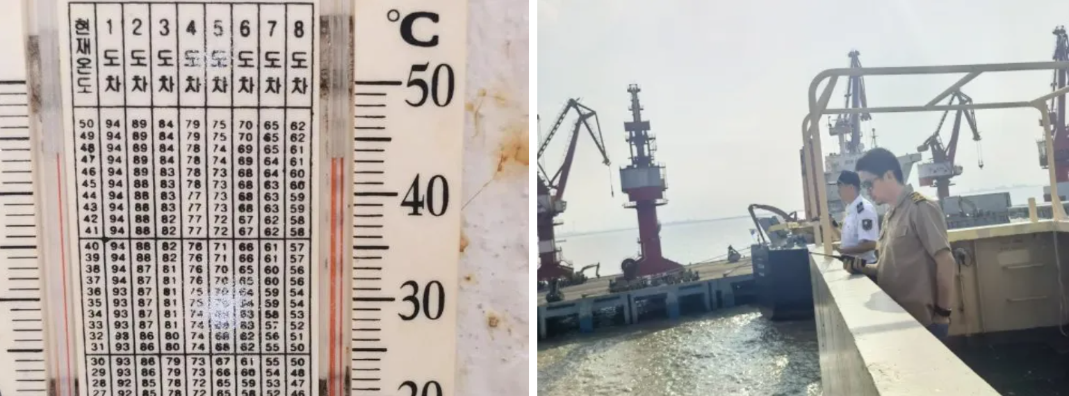 “蒸烤”在一線,持續(xù)的高溫陰雨天氣,讓引航工作一直處于蒸汽籠內(nèi)的濕漉環(huán)境,每一次的引航都是一次全身“濕身秀”。尤其近日引領(lǐng)的滿載鐵礦的“雪松”輪,甲板上的溫度達到了40℃之上,加上雨水蒸發(fā)的一陣又一陣熱氣,模糊著視線的同時也在“蒸烤”著引航員的身心。即便如此,引航員們依舊一艘又一艘的引領(lǐng)著船舶安全進出港航行。