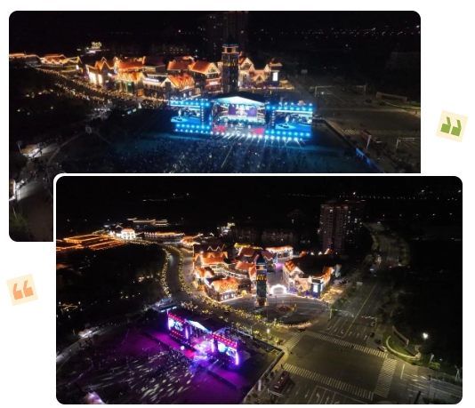 夜幕徐徐降臨,500架無人機同時升空,一場主題慶祝新中國成立75周年的無人機燈光秀正式開演。借用科技編程語言,敘述著鹽城從過去到未來的輝煌巨變,時而變化成濕地精靈,時而演變成現(xiàn)代大港,時而匯聚成鮮艷的五星紅旗,這不僅是一場視覺的盛宴,更是對新中國成立75周年的深情祝福。精彩的表演引得來自周邊的游客情不自禁地拿起相機,定格眼前的美好。