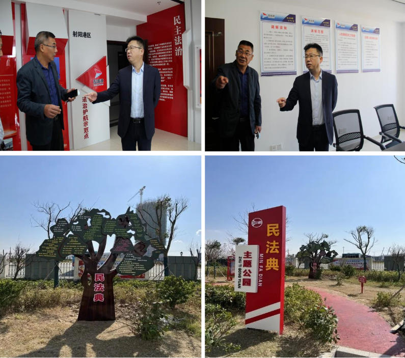 近期,射陽縣司法局局長張昊一行來到鹽城港射陽港區(qū),對港區(qū)法治文化陣地建設(shè)情況進(jìn)行調(diào)研指導(dǎo)。調(diào)研組對射陽港區(qū)利用法治文化陣地普法、學(xué)法、守法、用法的做法表示了充分肯定,并就港區(qū)今后法治文化陣地建設(shè)的方向、形式、內(nèi)容等方面提出意見和建議,重點對港區(qū)法治碼頭建設(shè)方案提出了建設(shè)性指導(dǎo)意見。