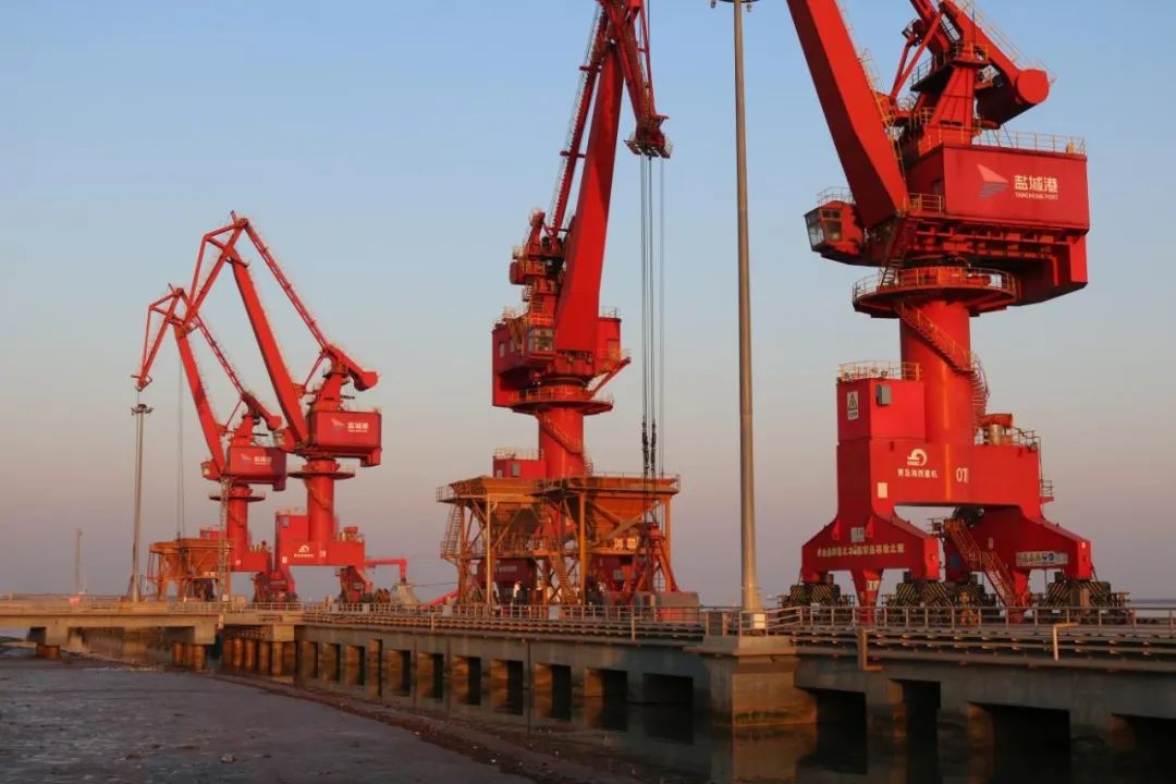 看,碼頭上高大的“鋼鐵士兵”一字排列,嚴(yán)陣以待,傳承延伸著港口奮進(jìn)的力量。