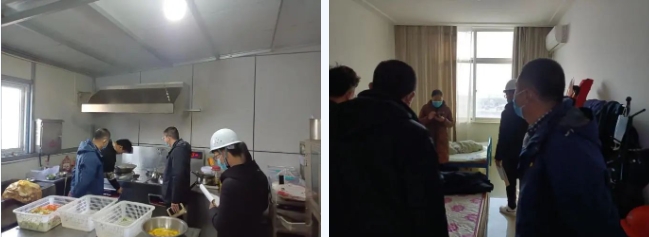 港區(qū)一方面?zhèn)浜米鳂I(yè)界面工作亭、電暖器等保暖設(shè)施;另一方面,科學(xué)搭配員工飲食,注重飯菜營(yíng)養(yǎng)與保溫,讓一線人員“住的溫暖、吃的熱乎、干的起勁”。
