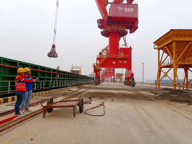 射陽港區(qū)設(shè)備班組秉承“學(xué)以致用,學(xué)用結(jié)合”的思想理念,多頻次參加崗位操作標(biāo)準(zhǔn)化互檢活動(dòng),不斷強(qiáng)化實(shí)操經(jīng)驗(yàn)。設(shè)備班組加強(qiáng)對(duì)大型設(shè)備防風(fēng)裝置的檢查和保養(yǎng),提高設(shè)備使用性能,使“合規(guī)管理”“提質(zhì)增效”在港區(qū)遍地開花。
