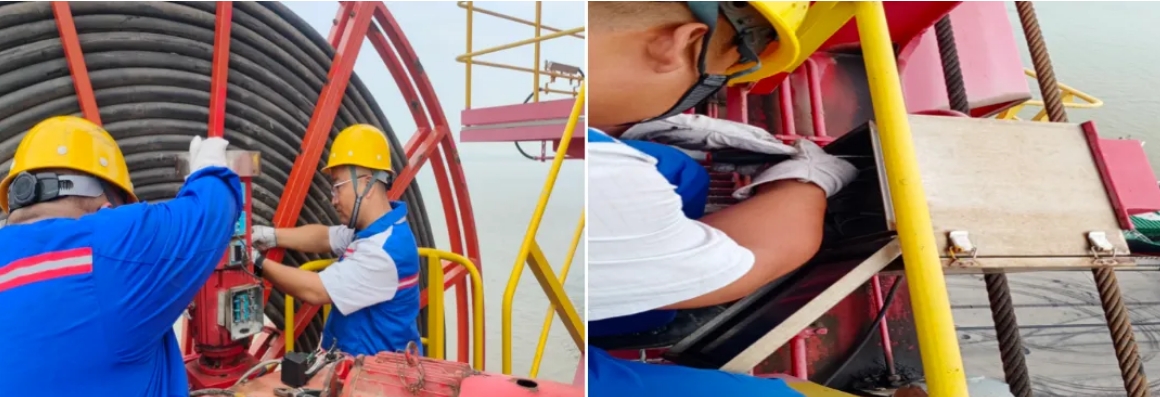 鹽城港射陽港區(qū)設備班組嚴格遵守設備操作、使用和維護規(guī)程,不畏酷暑,加大對碼頭8臺門機電纜卷盤維護工作,及時修復和更換有損部件,提高門機工作效率;利用集中智能潤滑系統(tǒng),遠程操控、合理控制每個潤滑點注油量,精準查看故障分支箱,保持各部位齒輪箱、鉸點等“關節(jié)”靈活,延長門機使用壽命,為港區(qū)生產(chǎn)經(jīng)營提速增效。