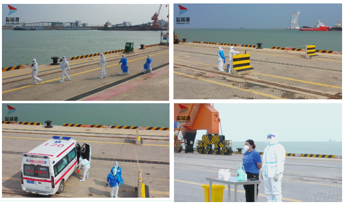 演練模擬來自巴拿馬籍奧泰號外輪裝載2萬噸鎳鐵到達(dá)濱海港區(qū)2號錨地靠泊期間發(fā)現(xiàn)新冠病毒核酸初篩結(jié)果為陽性的3例人員的情況,采取一系列規(guī)范應(yīng)急處置防控措施。演練四方在發(fā)生疫情險情后,沉著應(yīng)對,上下協(xié)同,多方聯(lián)動,及時管控人員,按照高、中、低風(fēng)險區(qū)域防范,規(guī)范消毒,救護(hù)車準(zhǔn)時到點。整個演練現(xiàn)場井然有序,醫(yī)護(hù)人員們衣著規(guī)范,忙而不亂。在面對近40度天氣的高溫酷暑天氣下,參加演練人員精神振奮、士氣高昂,真正達(dá)到了“以演促練以練備戰(zhàn)”的目的,充分展示了濱海港區(qū)新冠疫情防控人員良好的專業(yè)素質(zhì)和精神風(fēng)貌。