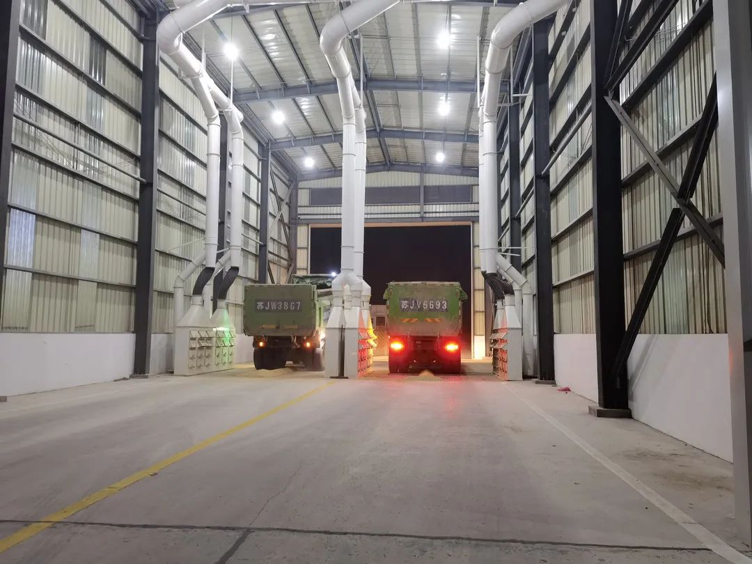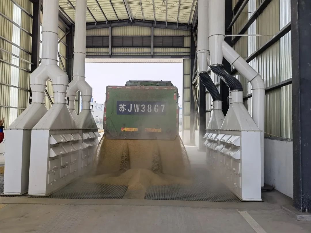 鹽城港港口公司糧儲公司投效使用的機械化平方倉在作業(yè)模式上進行大力改革,創(chuàng)新性使用雙梨式單托輥帶式輸送機,利用其高度集中化、自動化的功能優(yōu)勢,實現(xiàn)糧食遠距離、不間斷、大批量輸送進倉,進一步提高了糧食進倉速度和卸糧質(zhì)效,同時輸送線全程采用高效脈動除塵裝置及抑塵料斗,為節(jié)能增效、除塵環(huán)保提供有力保障,有效實現(xiàn)了綠色倉儲升級轉型。