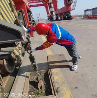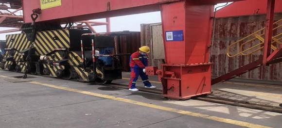 隨著一聲指令的下達,演練正式開始,糧食碼頭1#泊位“騰海明宇”輪作業(yè)過程中突然接上級通知,碼頭1小時后將突發(fā)強對流天氣,伴有雷電、大風、暴雨等緊急情況?,F(xiàn)場調(diào)度立即啟動突發(fā)極端天氣機械設(shè)備防風錨定應(yīng)急預案,門機停止作業(yè)、抓斗降至碼頭面、更換鉤頭、放下行走錨定,保障人員拉起門機防風拉索、安全巡查員對各處防風錨定情況進行再檢查、作業(yè)車輛就地停車并開啟雙閃、設(shè)備維護組人員全部保持待命搶修狀態(tài)。在場人員分工明確、各司其職、井然有序,僅用10分鐘,所有機械錨定任務(wù)全部完成,所有作業(yè)人員撤離到安全區(qū)域進行復盤點評,演練圓滿結(jié)束。