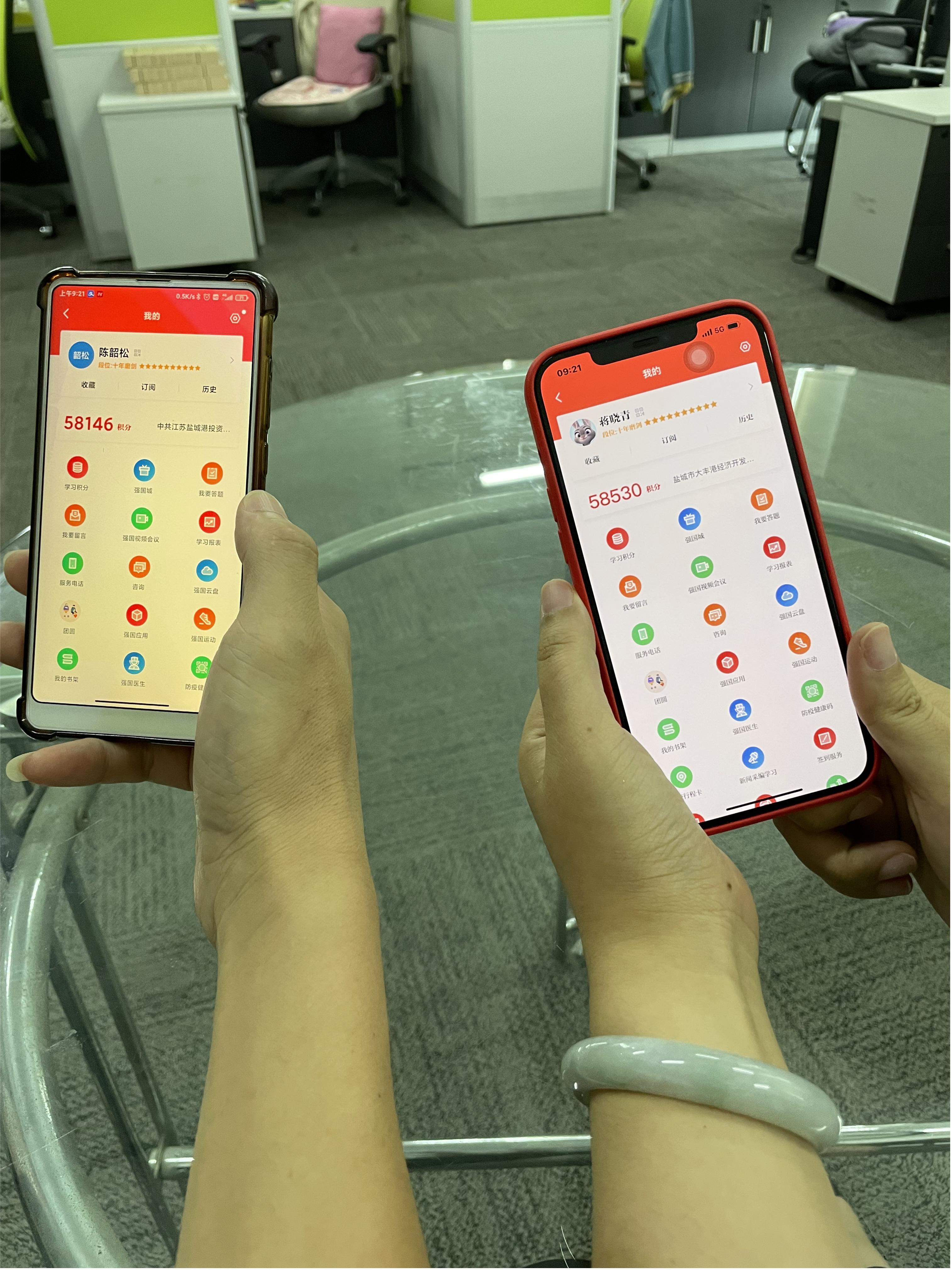 除了“學(xué)習(xí)強(qiáng)國(guó)”APP之外,黃海港城支部充分利用基層黨組織統(tǒng)一活動(dòng)日、“三會(huì)一課”等時(shí)機(jī),開(kāi)展雙人PK,激發(fā)學(xué)習(xí)熱情。