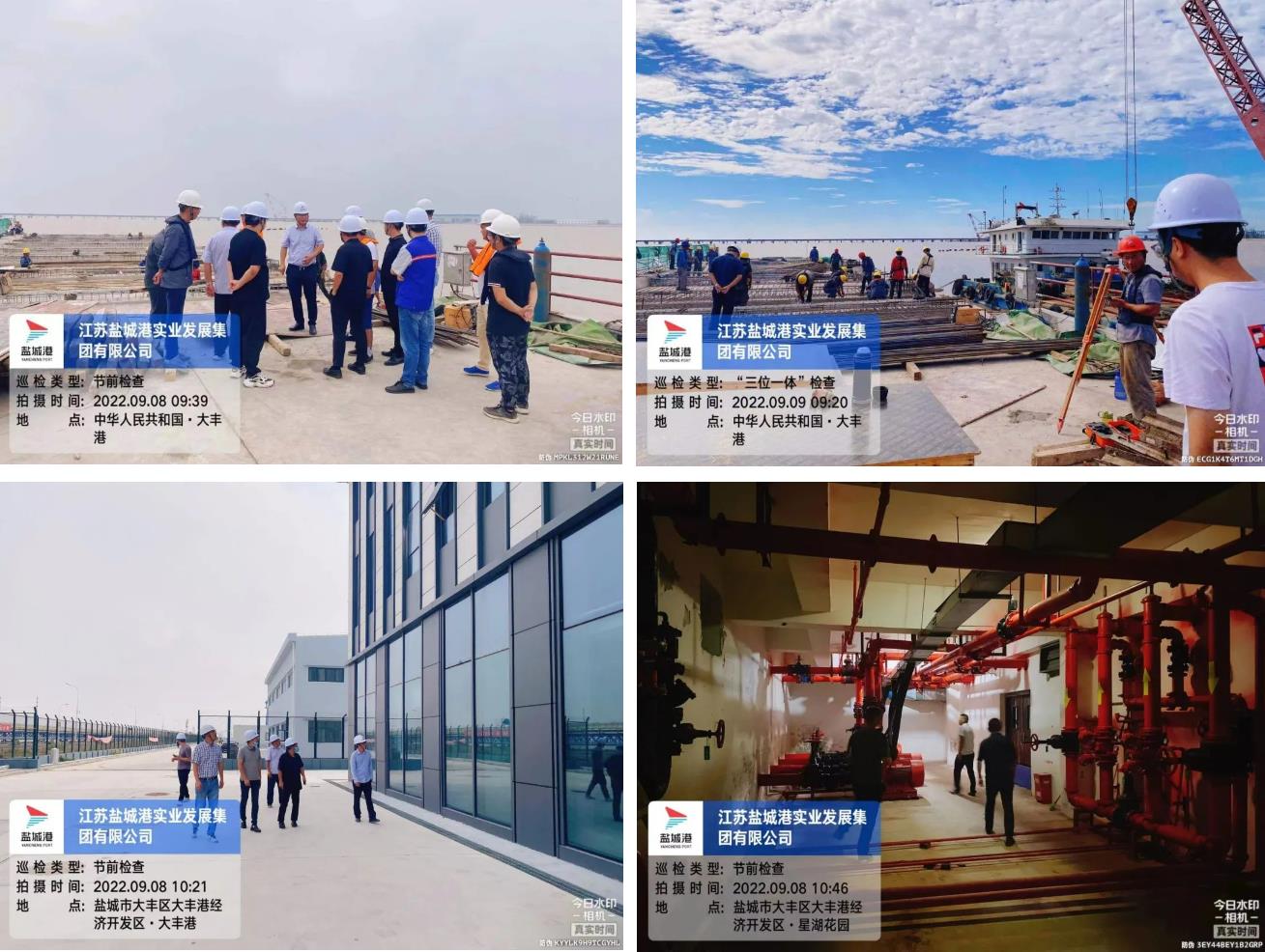 在鹽城港大豐港區(qū)工作船安保設施工程、鹽城港大豐港區(qū)集裝箱碼頭堆場工程、鹽城港聯(lián)檢服務樓提升改造工程等在建項目現(xiàn)場,實業(yè)集團班子成員、建設公司安全環(huán)保部、工程管理部等有關安全條線人員,深入各在建項目現(xiàn)場開展中秋節(jié)節(jié)前安全生產(chǎn)大檢查。認真檢查節(jié)前安全生產(chǎn)防范措施落實、安全隱患排查整治、疫情防控措施、安全監(jiān)管制度落實、工程安全管理和消防安全等情況,對檢查發(fā)現(xiàn)的問題提出整改要求,確保萬無一失。