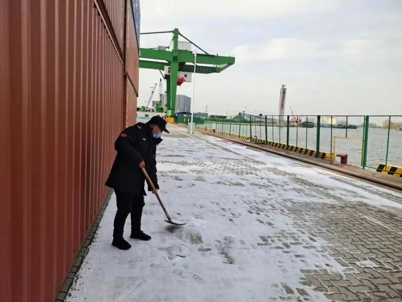 面對(duì)大雪這場(chǎng)嚴(yán)峻考驗(yàn),實(shí)業(yè)集團(tuán)物業(yè)公司全體員工堅(jiān)守崗位,嚴(yán)陣以待。在鹽城港各個(gè)港區(qū)內(nèi),各項(xiàng)目組負(fù)責(zé)人深入各物業(yè)服務(wù)點(diǎn)坐陣指揮,物業(yè)工作人員分工明確,高效清掃港區(qū)的積雪,確保路面無積雪結(jié)冰、安全通暢。