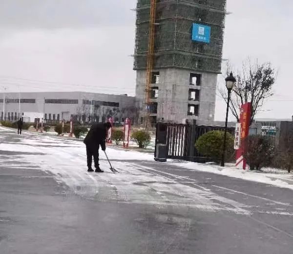 1月14日,鹽城迎來2023年第一場(chǎng)雪。為保障港區(qū)員工出行安全,確保港區(qū)安全生產(chǎn),實(shí)業(yè)集團(tuán)物業(yè)公司立即啟動(dòng)清雪除冰工作應(yīng)急預(yù)案,打響2023年除雪保暢“第一仗”。