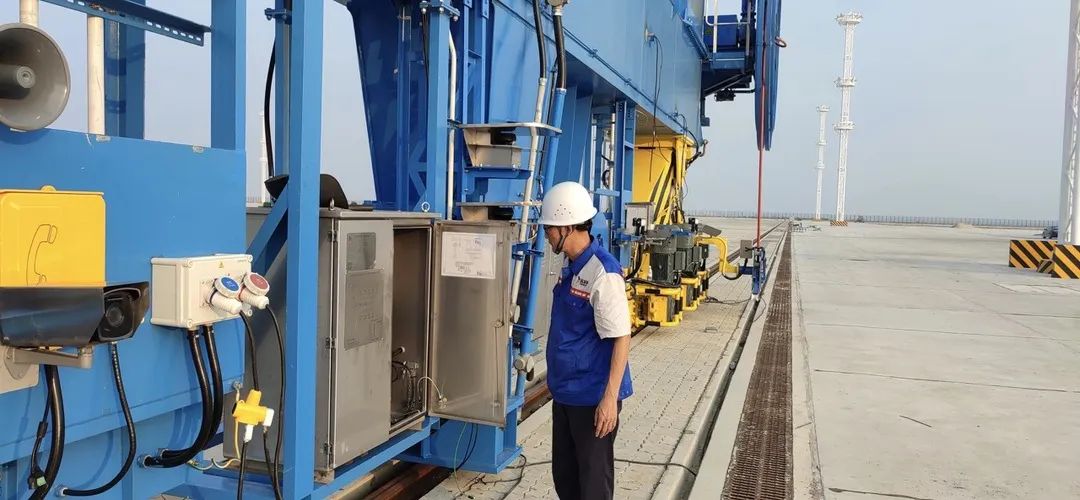 為強(qiáng)化項(xiàng)目管理,積極研究、建立風(fēng)控管理體系,他敢為人先,在信息化、數(shù)字化、智能化的發(fā)展道路上不斷探究。他曾說“深入一線才是做好管理的重中之重”。進(jìn)入夏季以來,當(dāng)氣溫升至38度左右時(shí),軌道吊表面的溫度也遠(yuǎn)超60度,他身先士卒,帶領(lǐng)一線員工數(shù)次登高在滾燙的鋼結(jié)構(gòu)件表面安裝、調(diào)試自動(dòng)化設(shè)備,仔細(xì)摸排,現(xiàn)場(chǎng)指導(dǎo)、現(xiàn)場(chǎng)動(dòng)手,從技術(shù)層面為項(xiàng)目提供可靠的支撐。