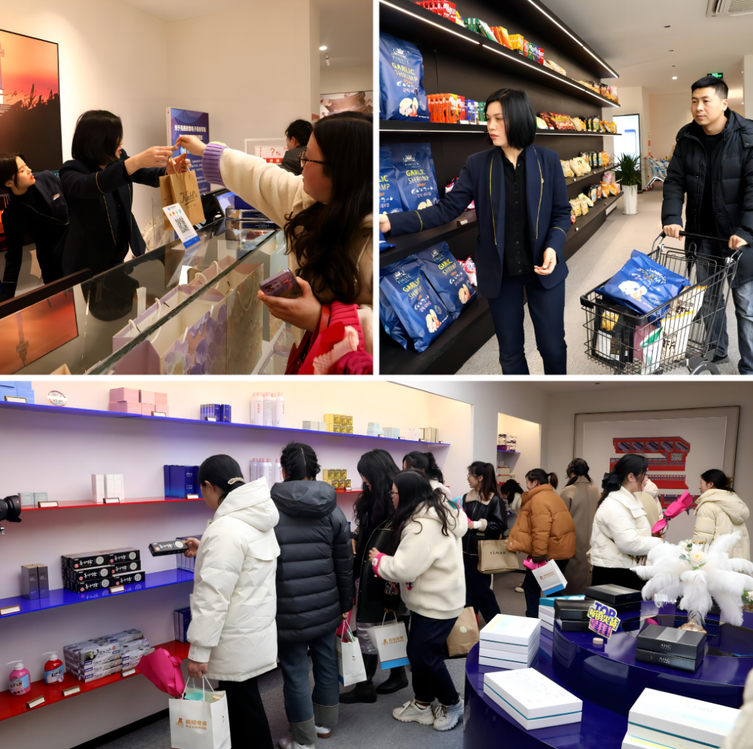 除了美食的誘惑,園區(qū)內(nèi)的各個(gè)特色展銷館也呈現(xiàn)出一派熱鬧景象。結(jié)合女性消費(fèi)習(xí)慣,各展銷館精心策劃了婦女節(jié)禮包和促銷活動(dòng),琳瑯滿目的高檔化妝品、法國(guó)紅酒、香水等商品,讓游客們流連忘返。一位滿載而歸的顧客興奮地分享道:“這里的商品真的是物超所值,無論是自用還是送人,都是好選擇!”